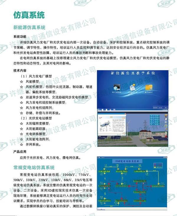 详细仿真风力发电厂和光伏发电站内部一次设备,自动设备,保护和控制系统,重点研究控制系统的调节策略、调节特性、操作特性,培训运行人员监控和调节能力,达到安全经济运行的目的。