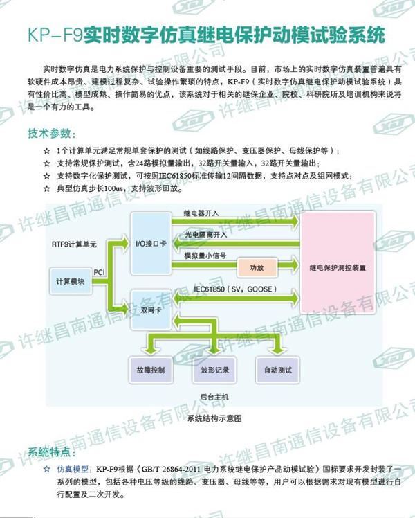 KP-F9实时数字仿真继电保护动模试验系统